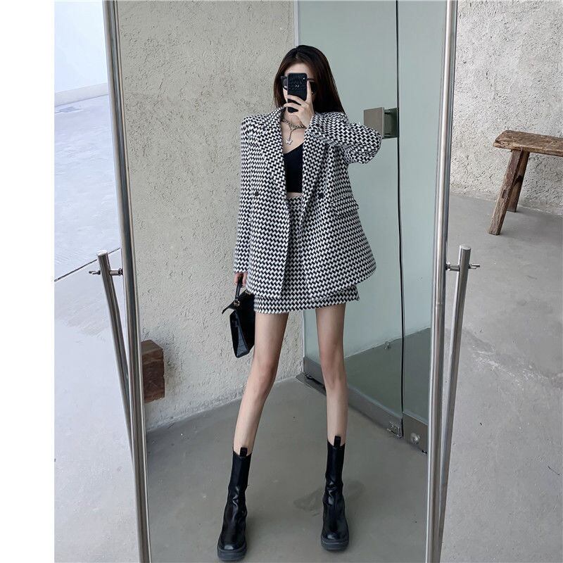オータムウィンター格子柄ジャケット スカート 秋物 冬物 普寧57924800512