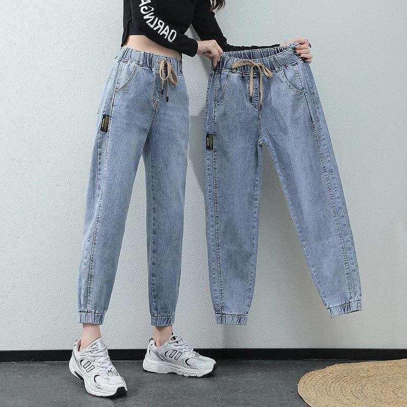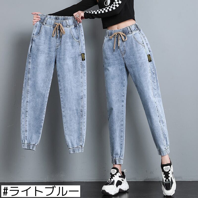 ジーンズ スプリングオータムルーズ薄手ストレッチウェストパンツ エラスティック 伸縮 春物 秋物 普寧22632740180