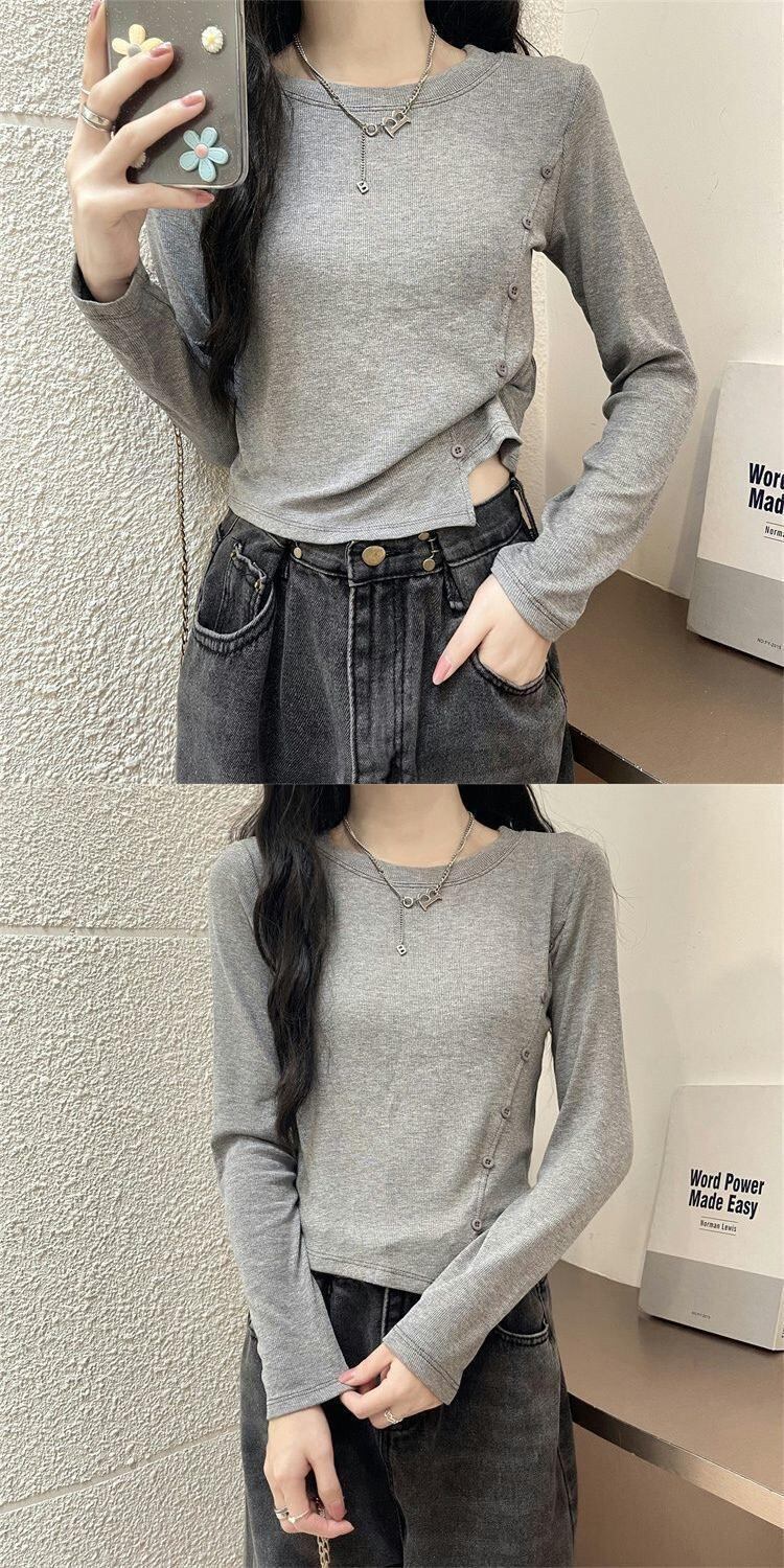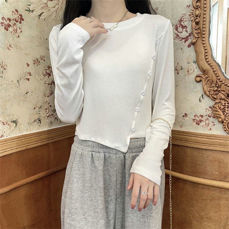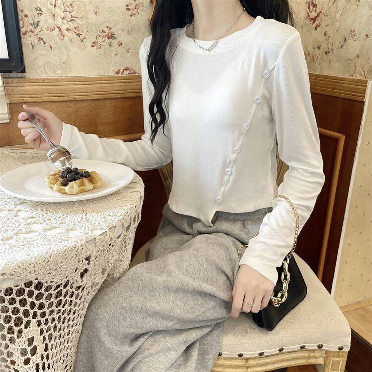 ボタンTシャツ シャツ ルーズオータムトップス ロング 秋物 普寧89400293724