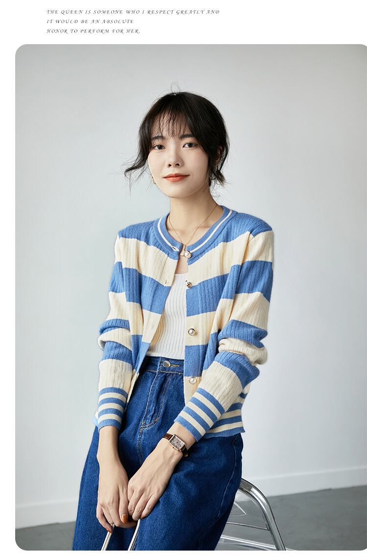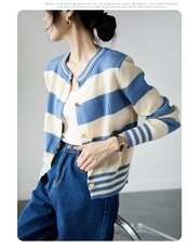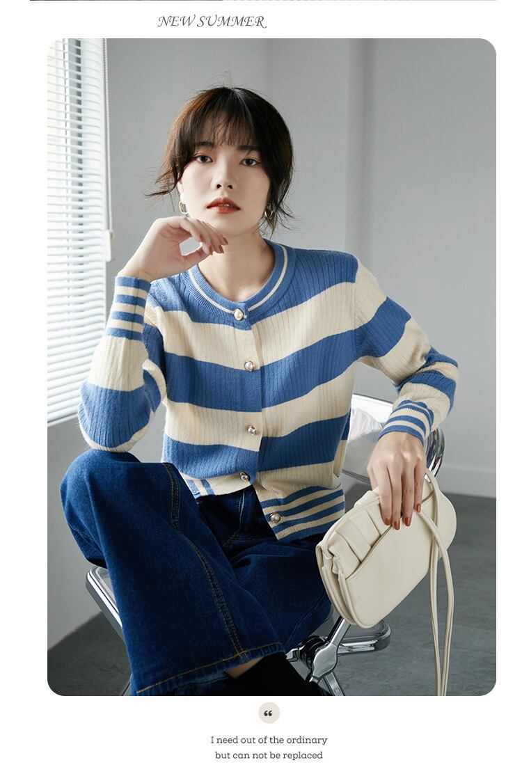 ストライプニットカーディガン薄手ジャケット シャツ 普寧20595355179