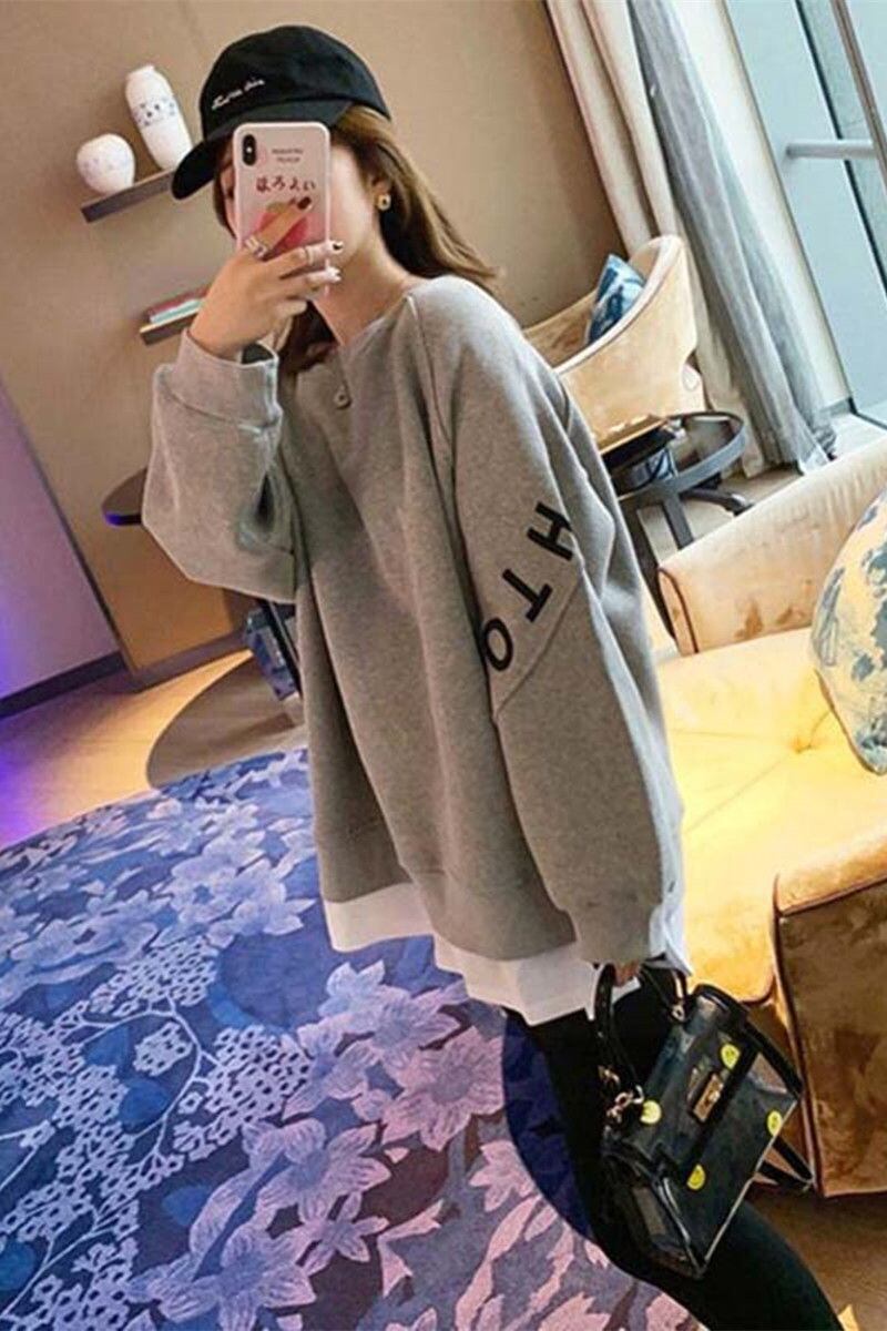 グレーセーター スプリングオータムツーピースルーズ 春物 秋物 普寧33843132056