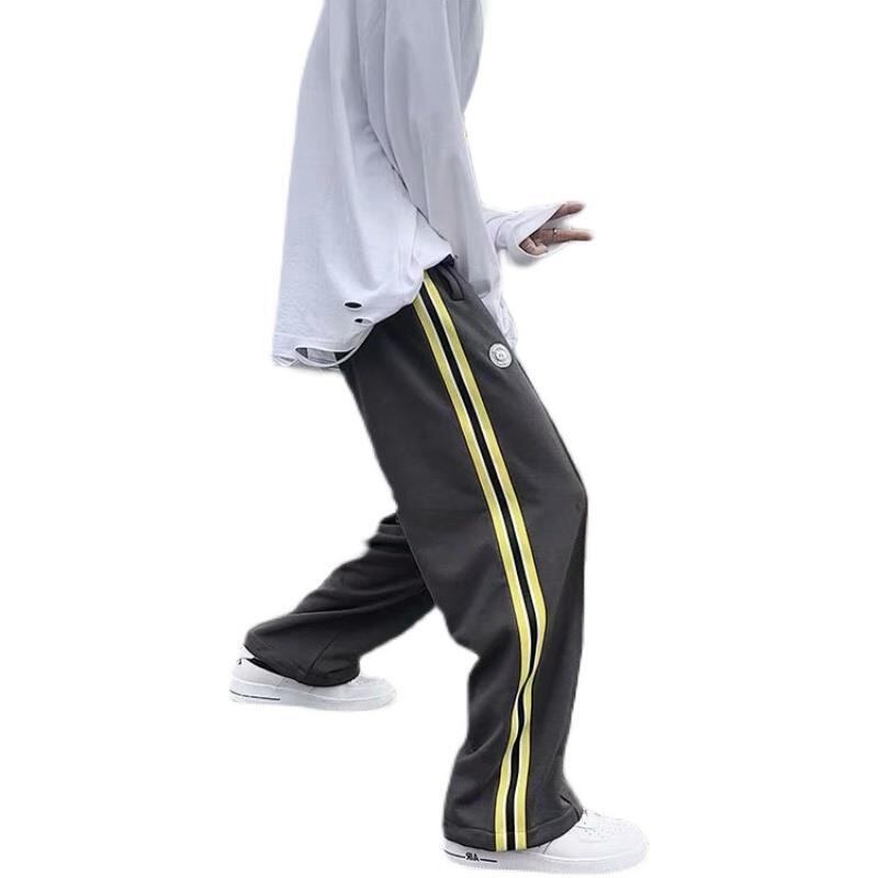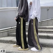 ワイドレッグパンツ 薄手ストライプカラー ワイドパンツ 普寧39189680595