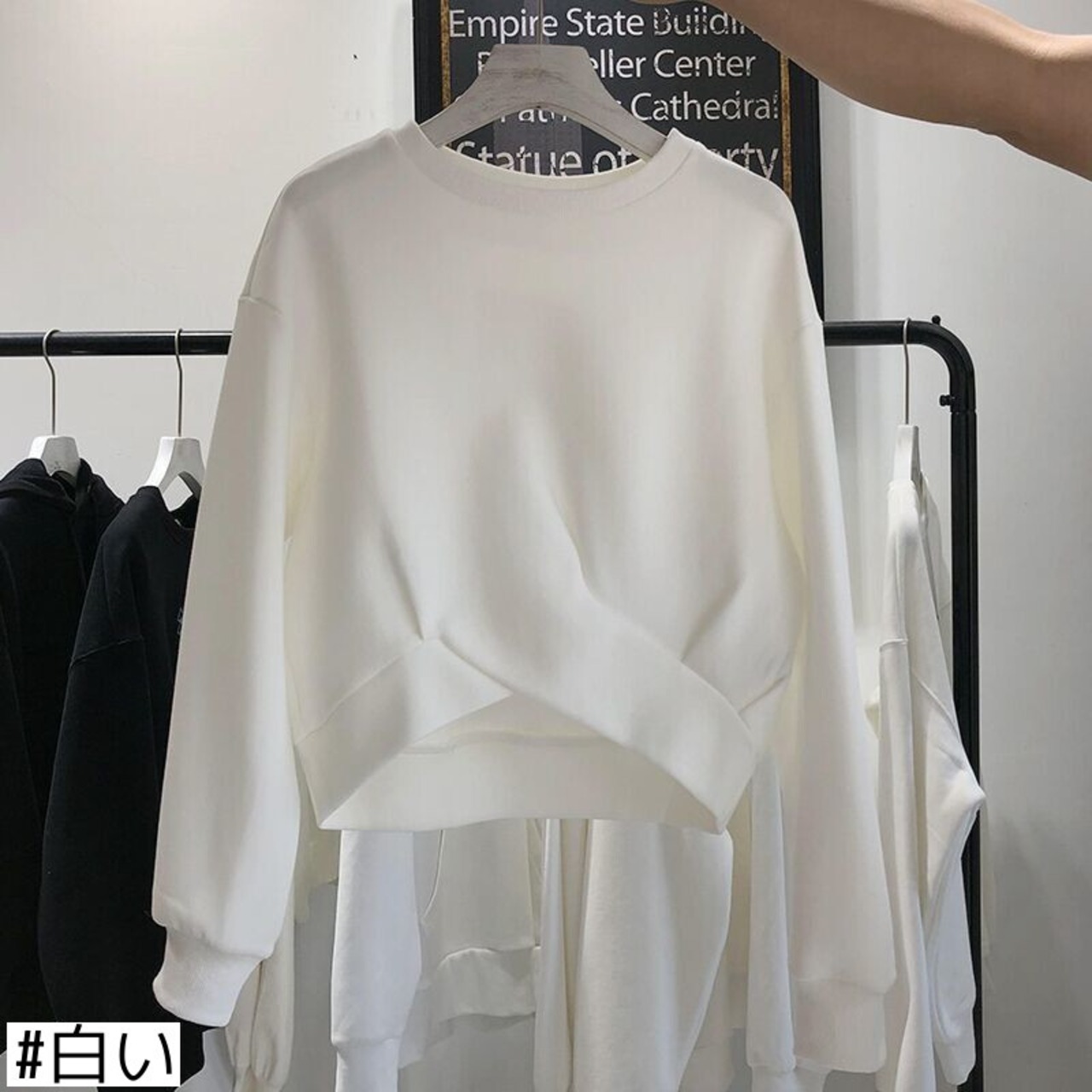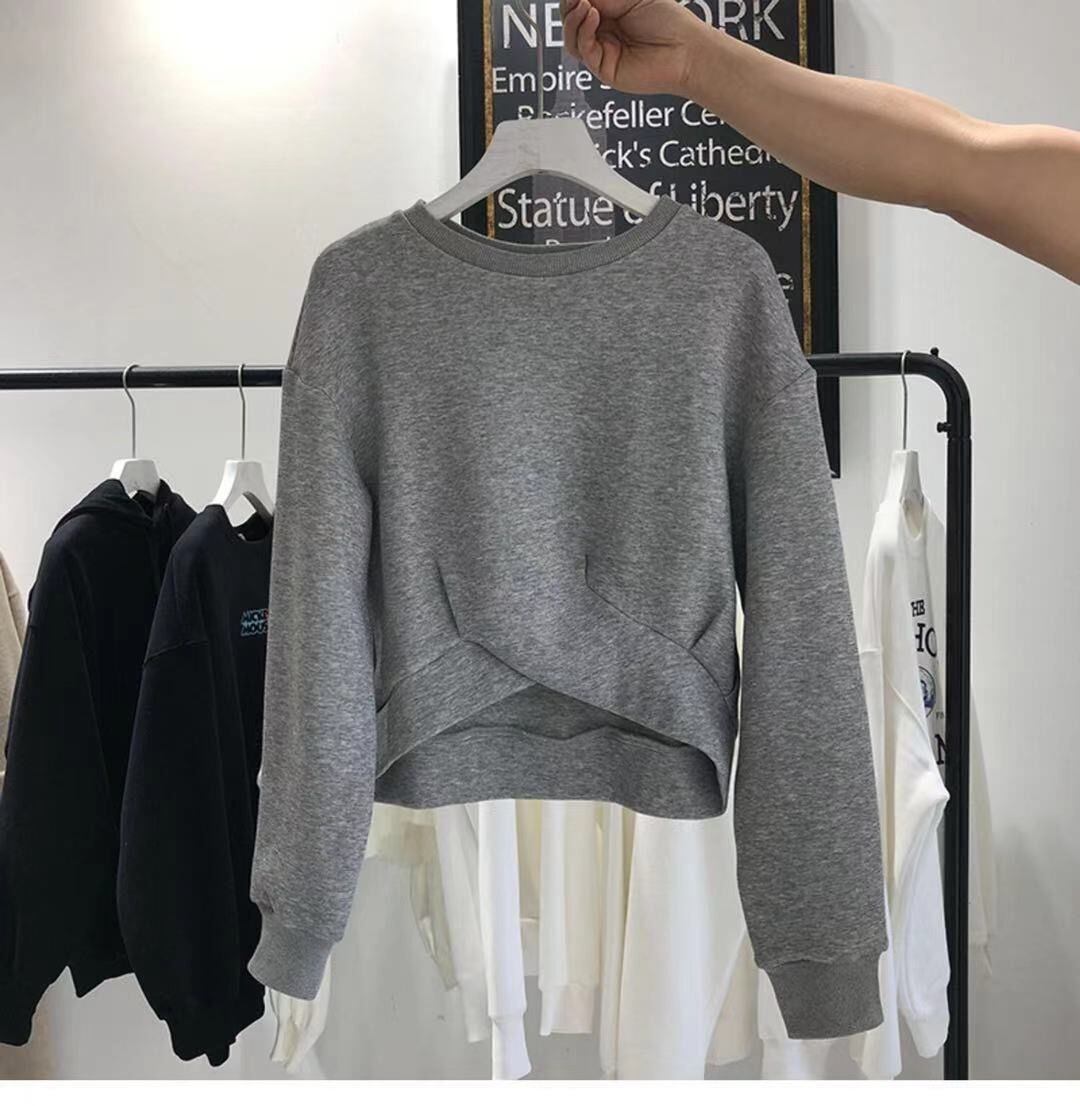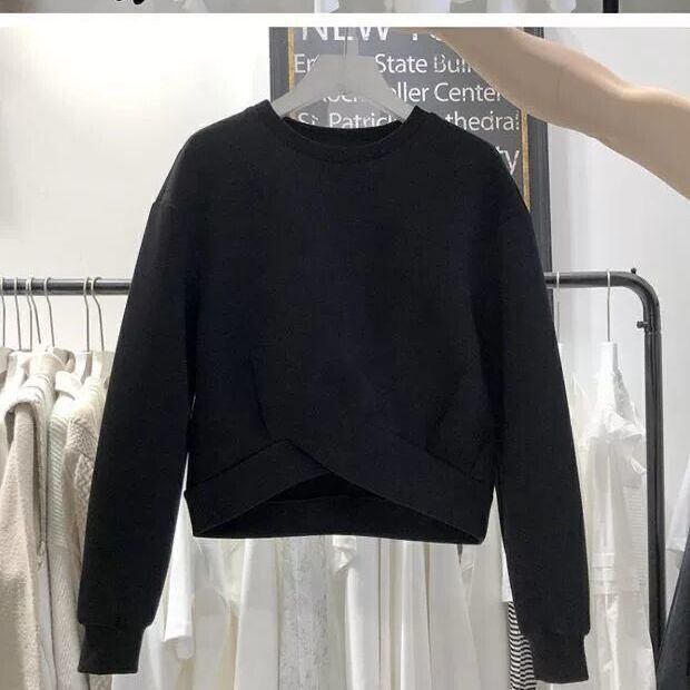 セーター レディーススプリングオータムスタイルショートルーズラウンドネックブラウス 春物 秋物 Oネック 普寧56794836216