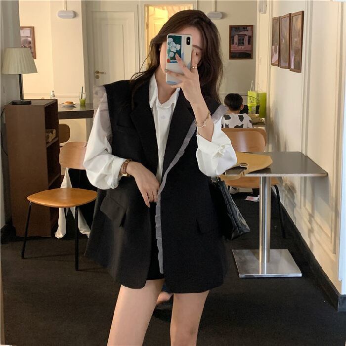 色:黒のベスト,グレーのTシャツ,白のシャツ