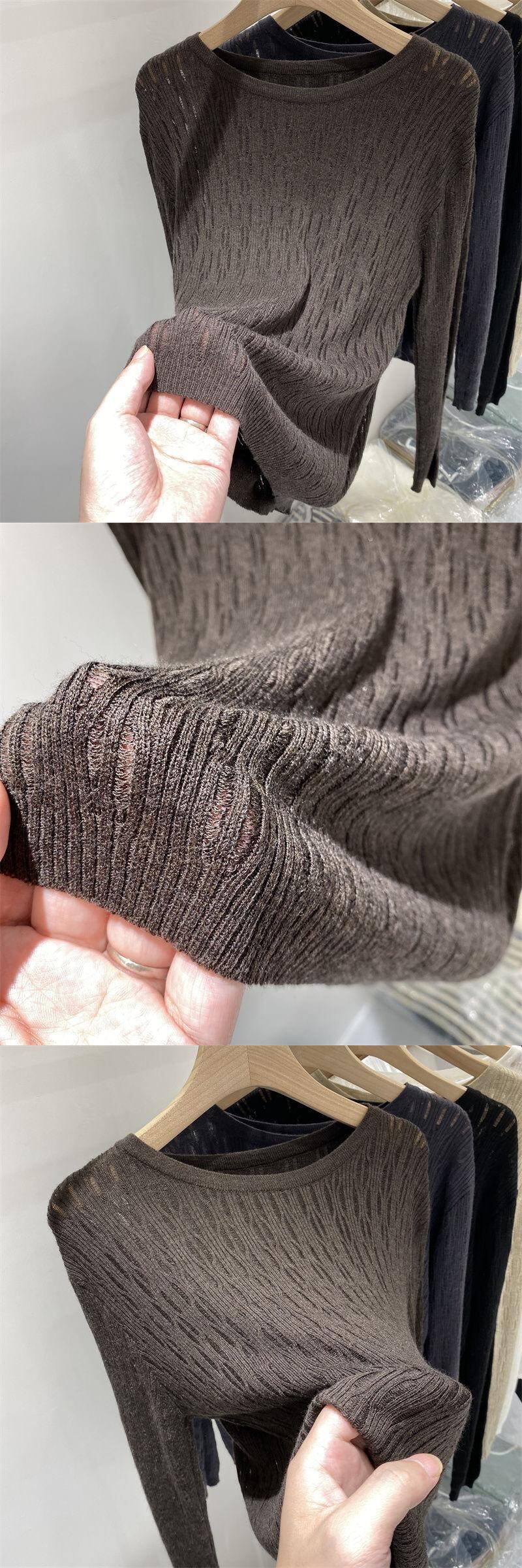 オータム薄手ニットセーター ルーズカジュアルブラウス トップス ロング 秋物 シルク ヨーロピアン 普寧34658521613