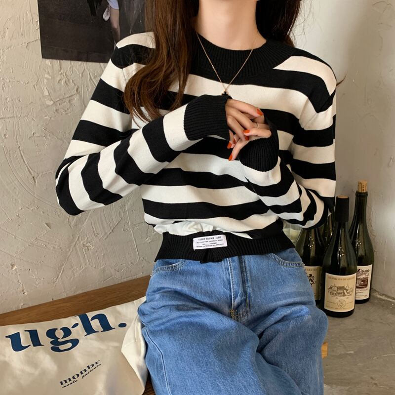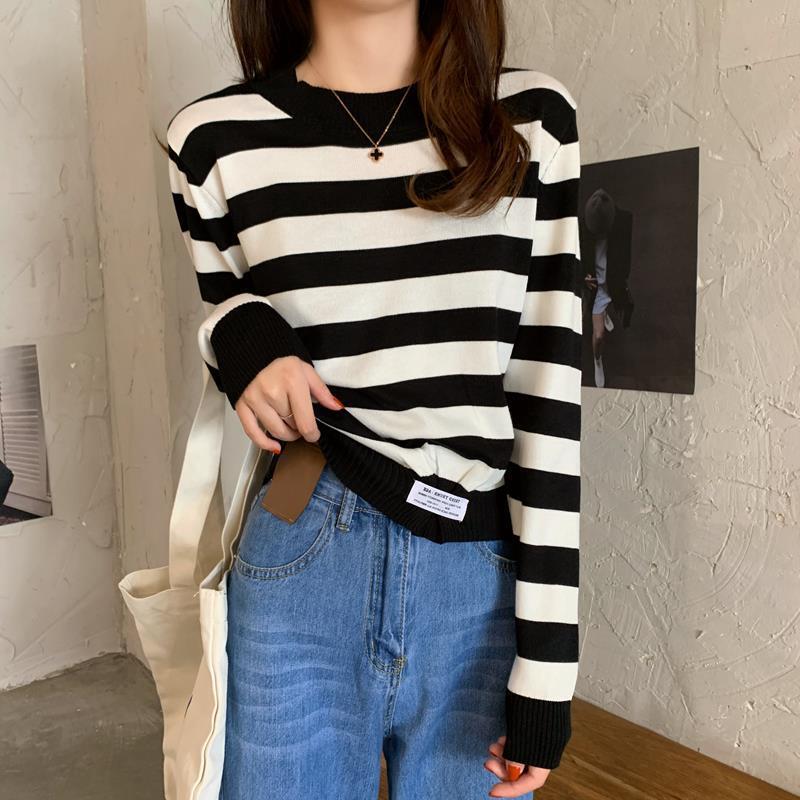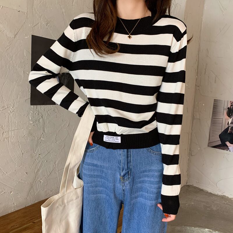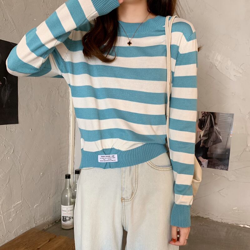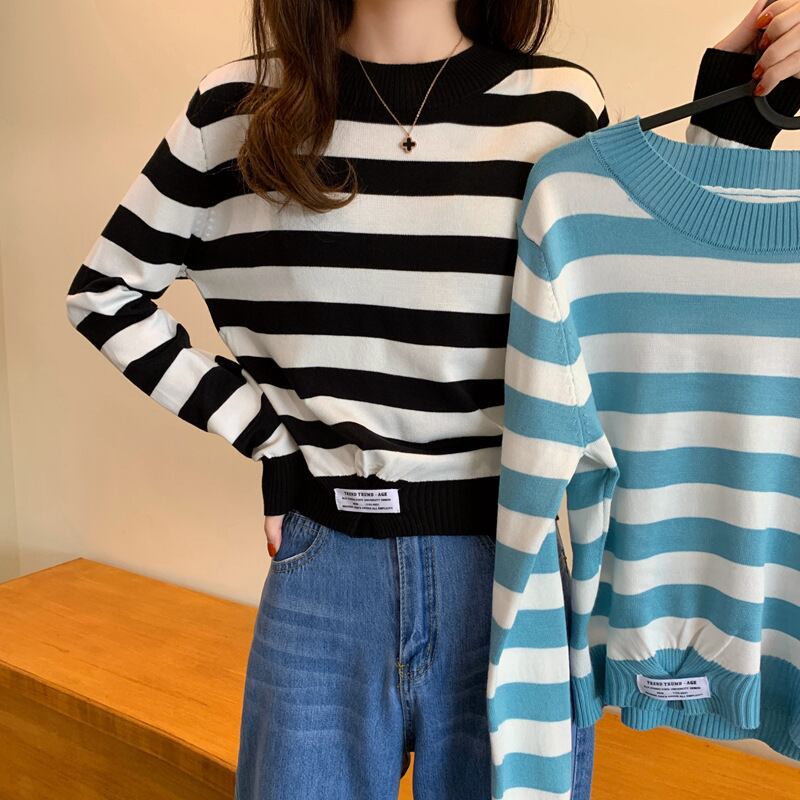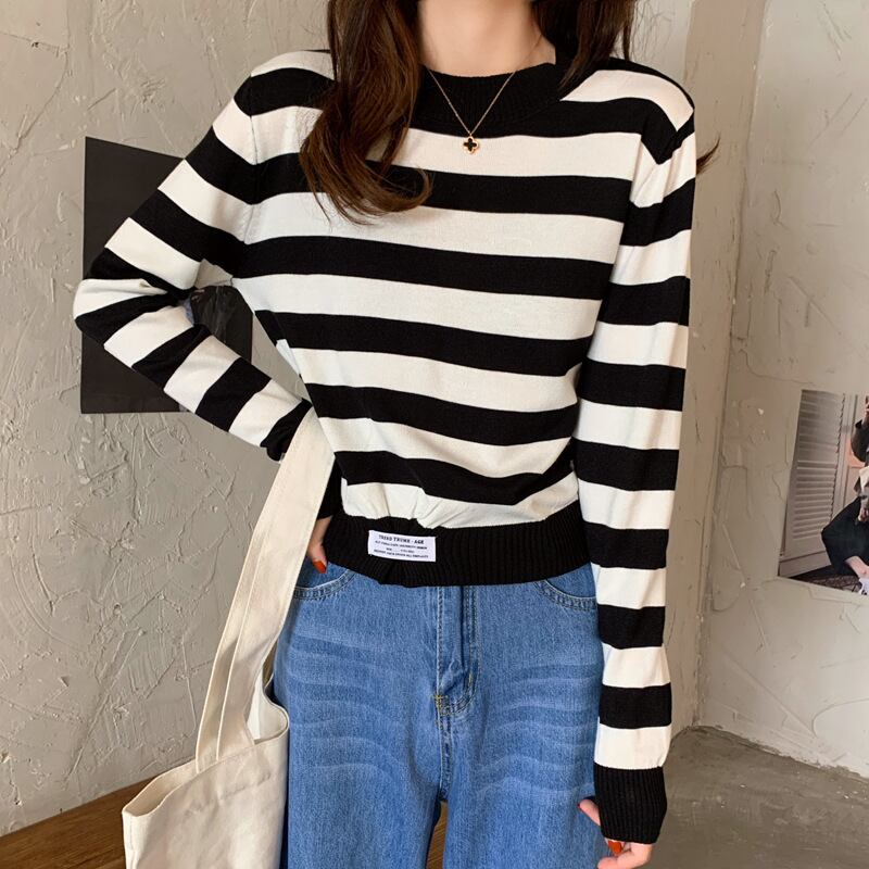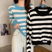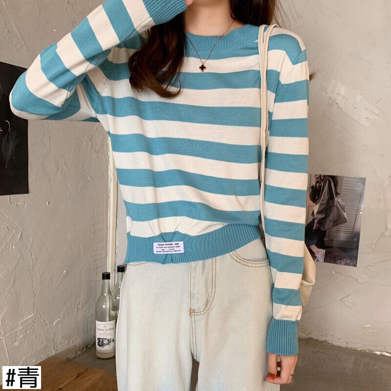 ニットセーター オータムシャツ ストライプスリム ロング 秋物 普寧57447984492