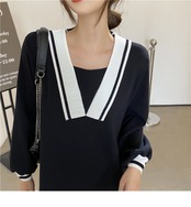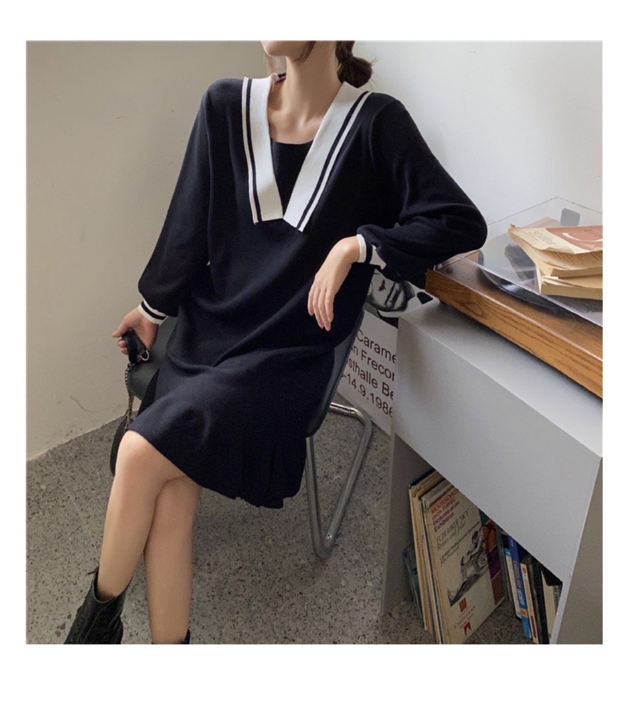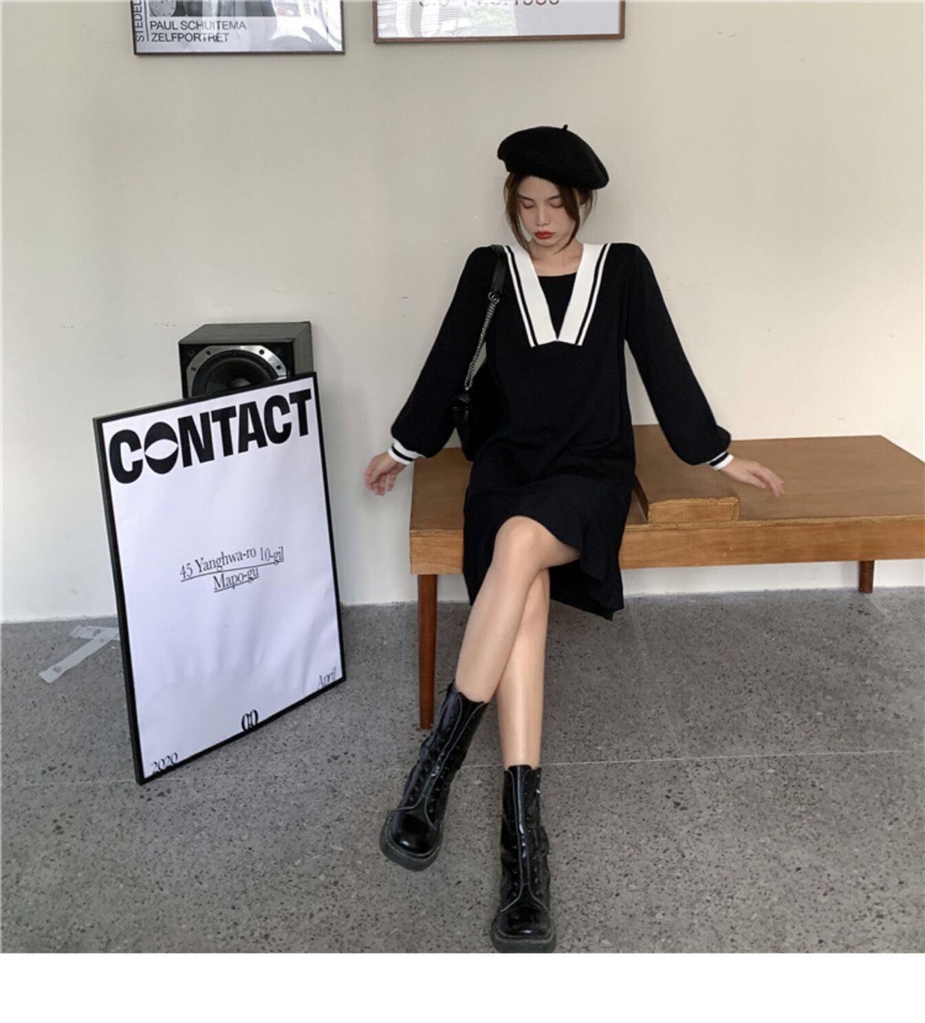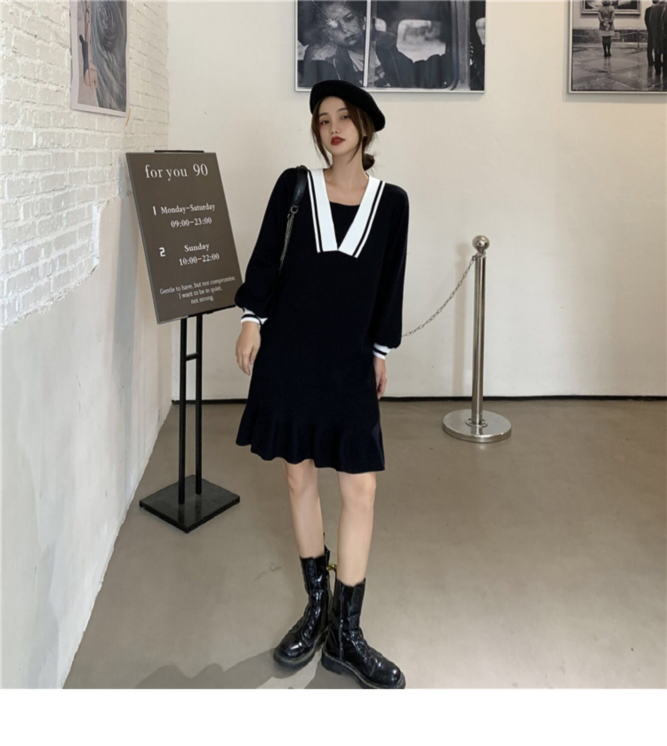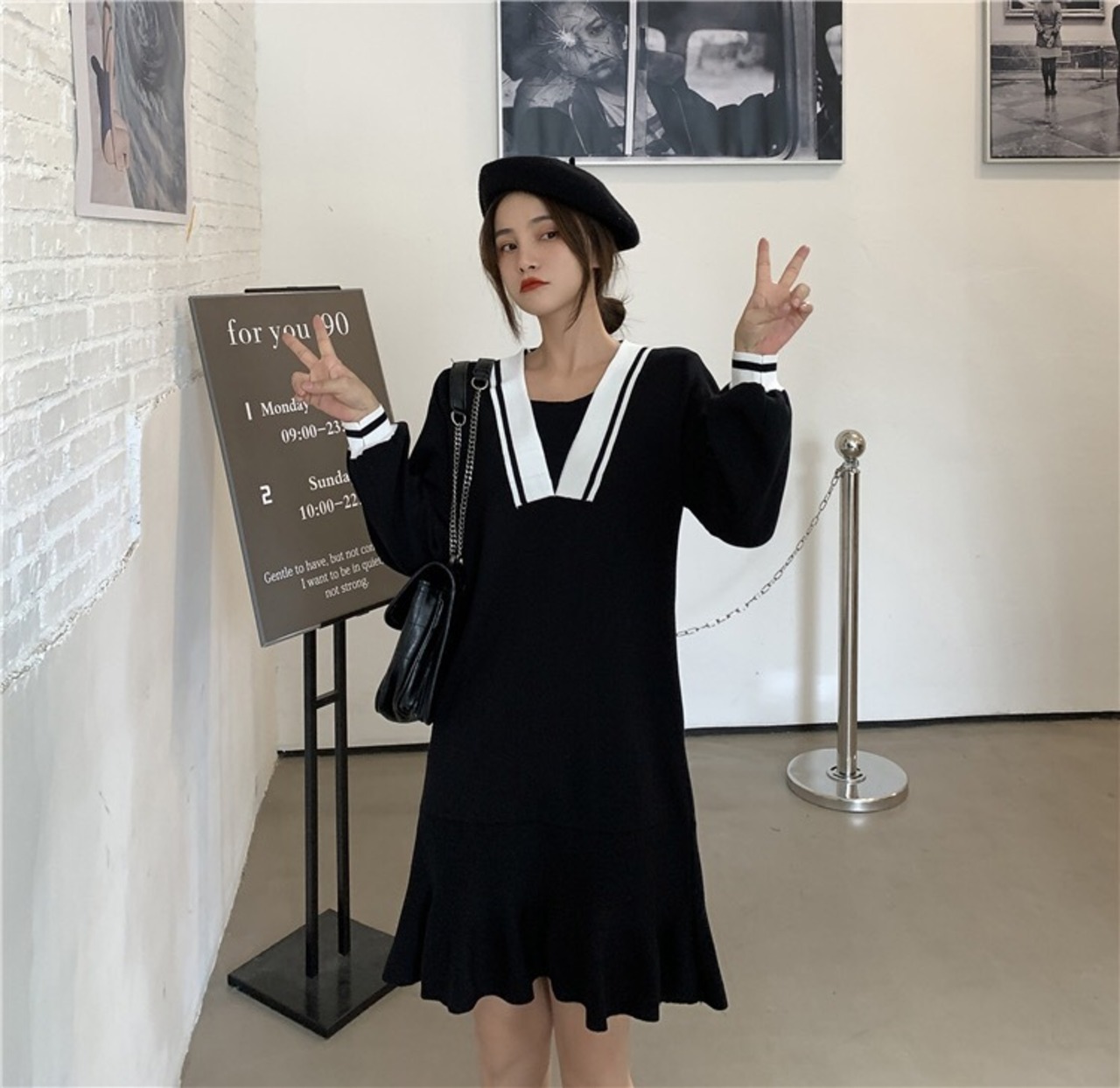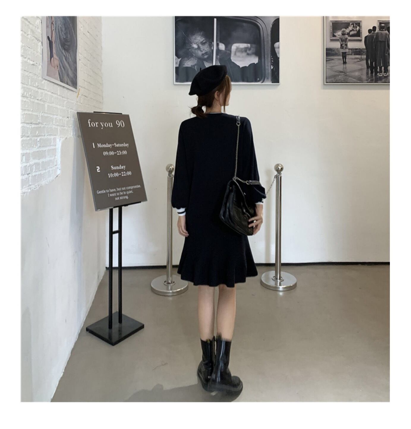 ブラックニットスカート オータムスタイルスタンダードAラインドレス レトロ ストリート 秋物 普寧19391265677