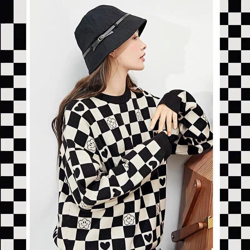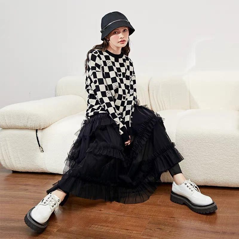 ブラックホワイトセーター ニットオータムジャケット 長袖スリーブ ロング 秋物 普寧39849999577