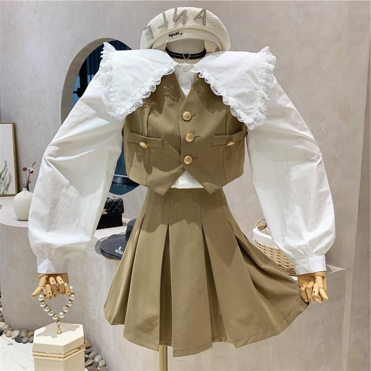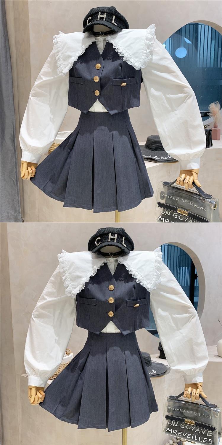 オータムウェストハイウェストプリーツスカート シャツ 薄手 秋物 普寧3415806989