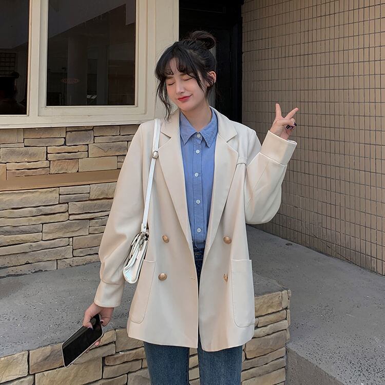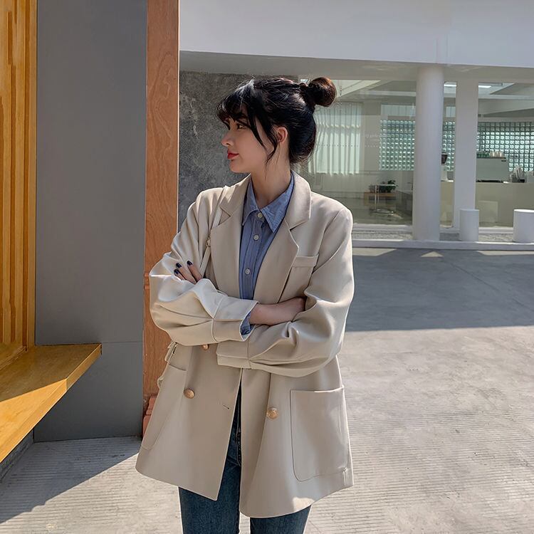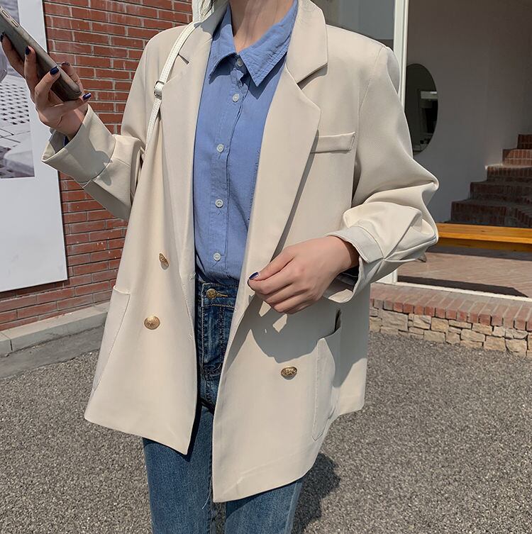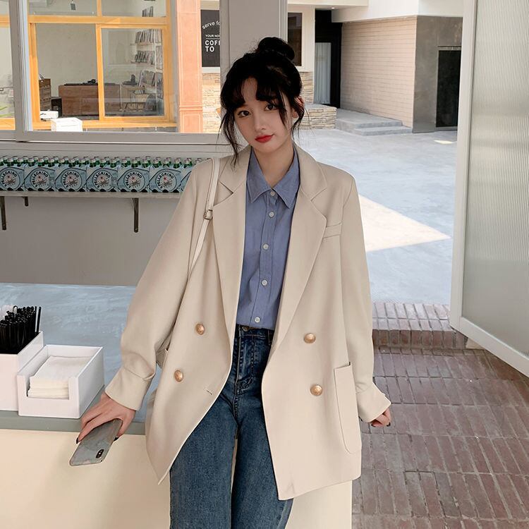 スプリングオータムルーズダブルブレストカジュアルジャケット レディース ロング 春物 秋物 普寧23207002368