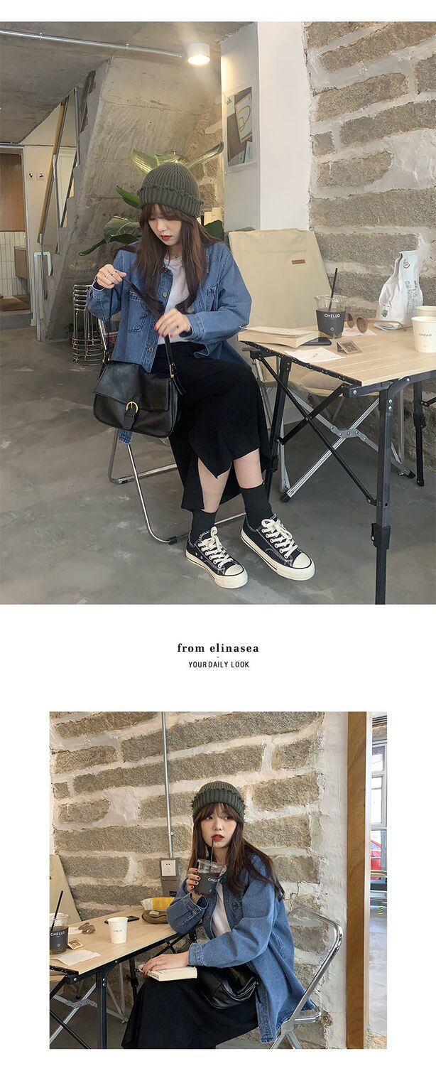 スプリングルーズスタンダードシャツ ロング レトロ 春物 普寧10725438006
