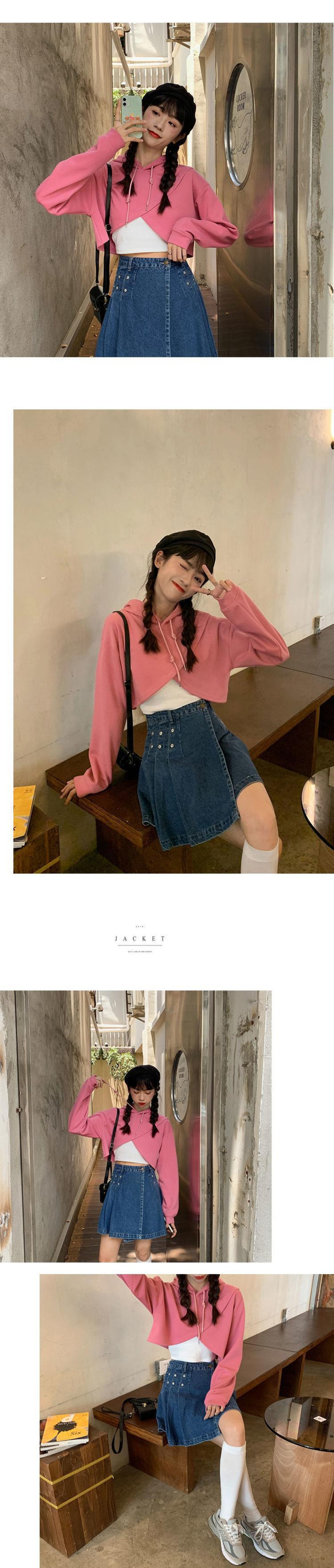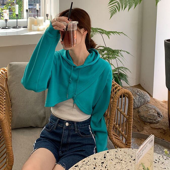ショートフードセーター スプリングオータムスタイルルーズ薄手ジャケット 春物 秋物 普寧16797176115