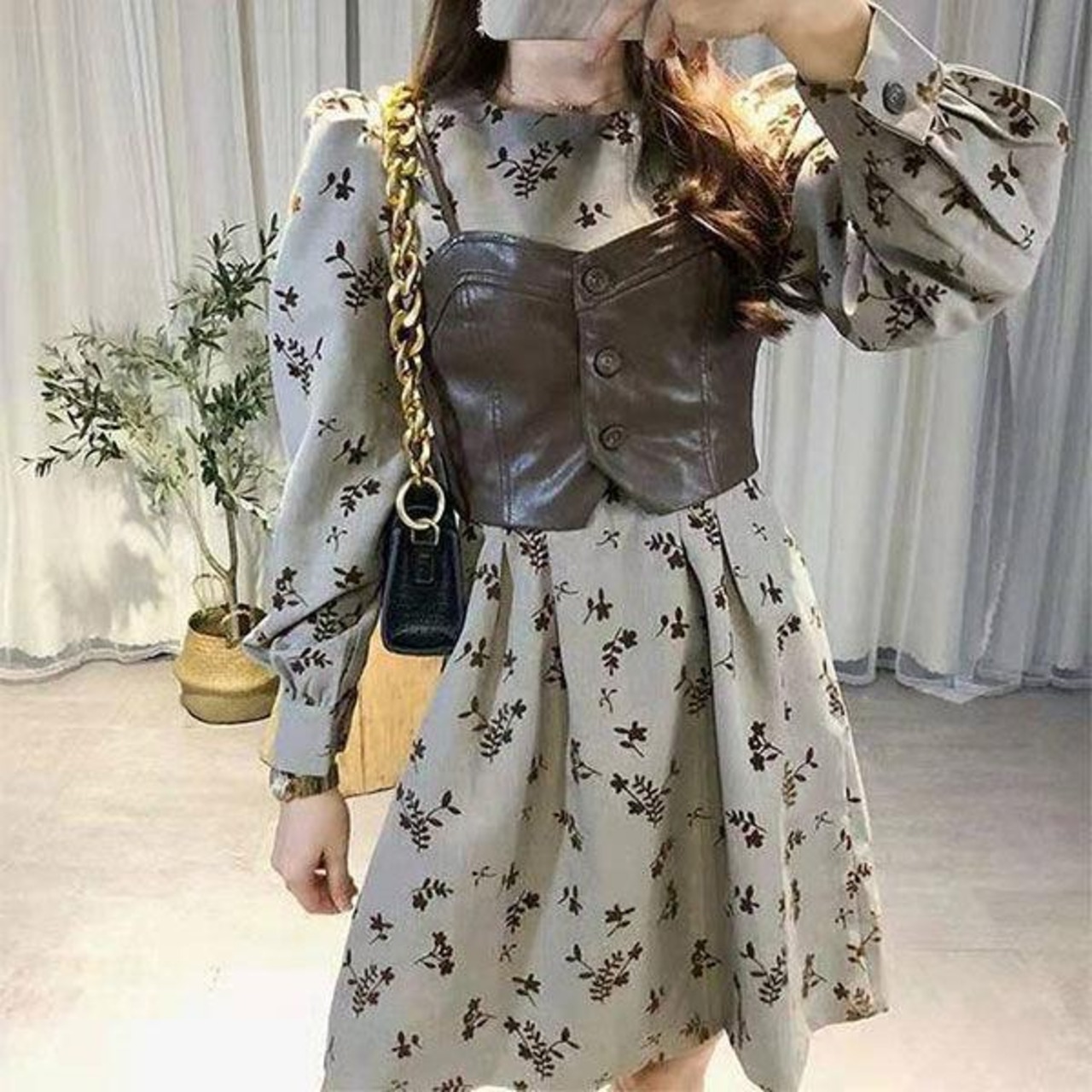 オータムスプリングドレス 大きめサイズ 春物 秋物 普寧5013755256