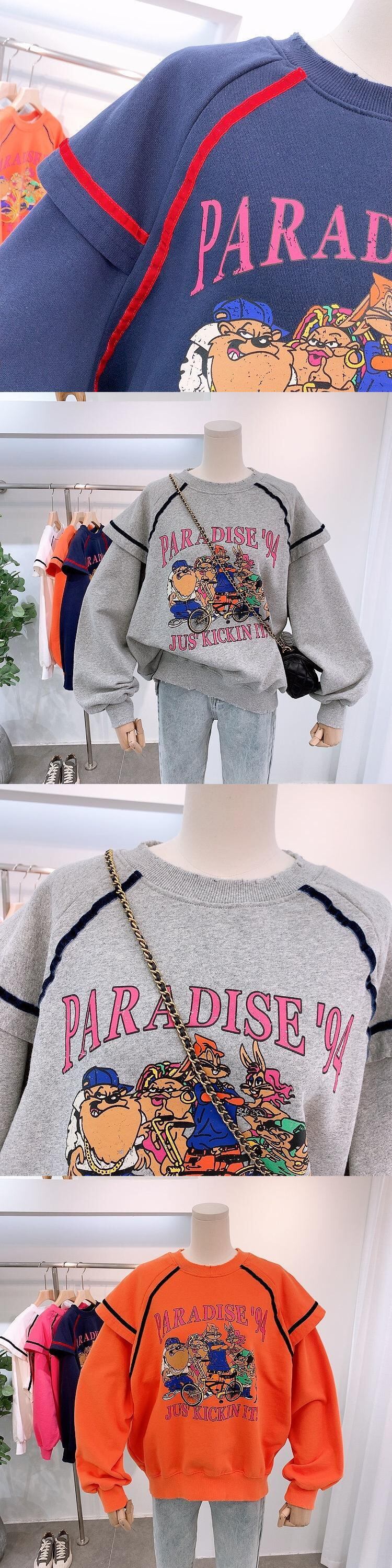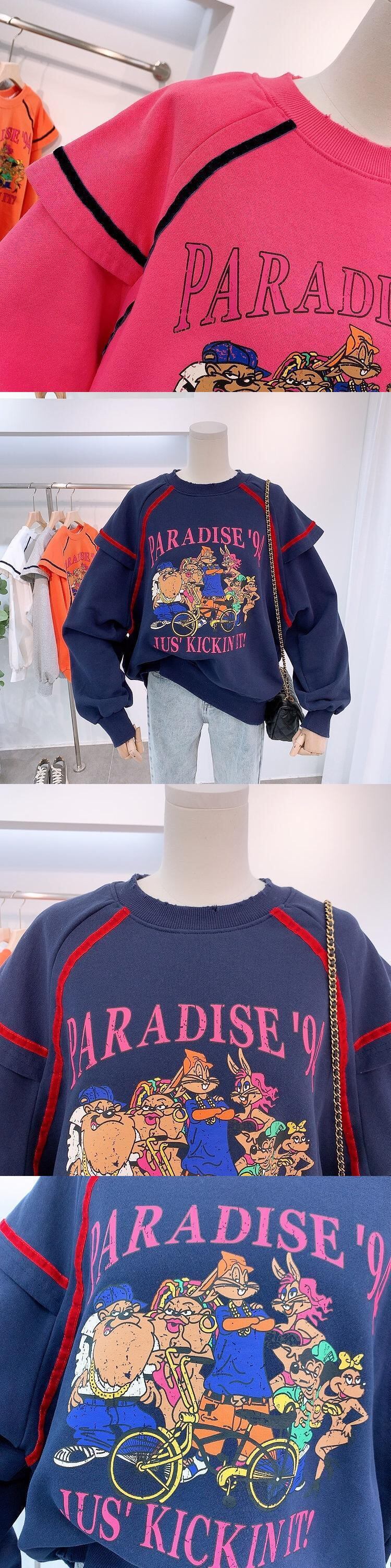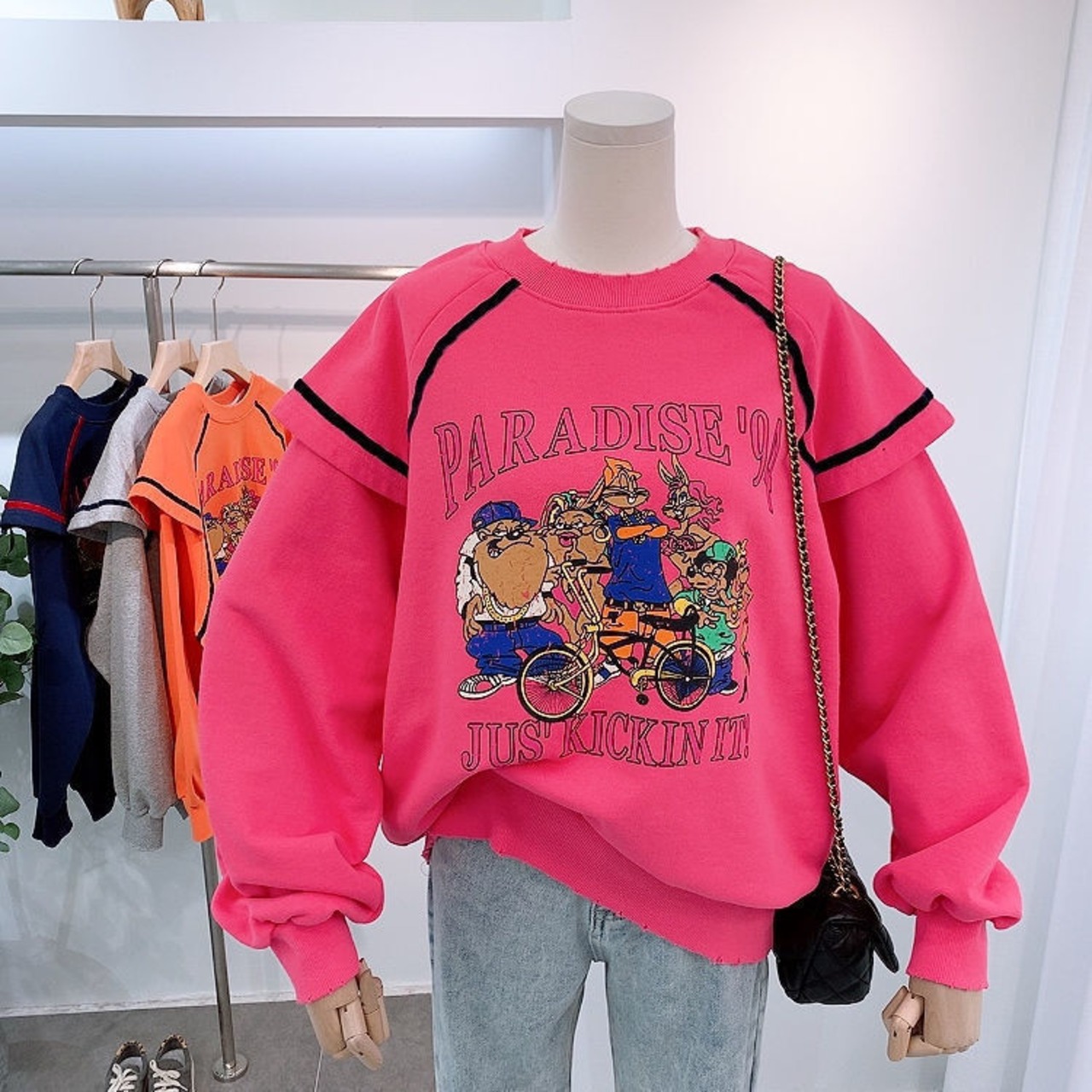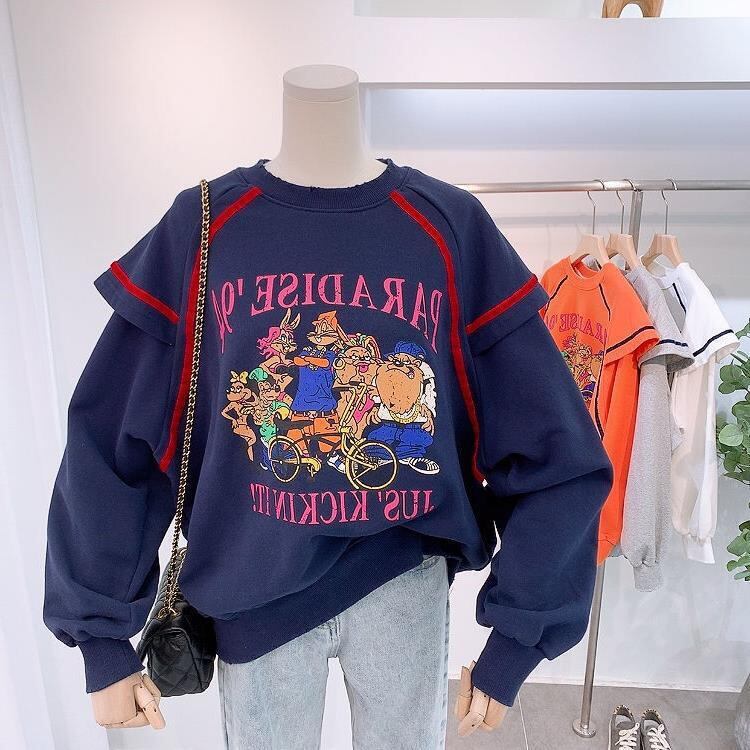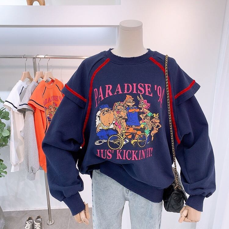スウェット オータムプリント柄ルーズ薄手プルオーバー トップス 秋物 普寧19379422144