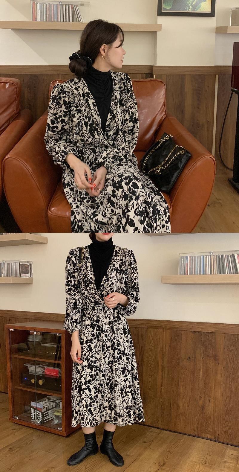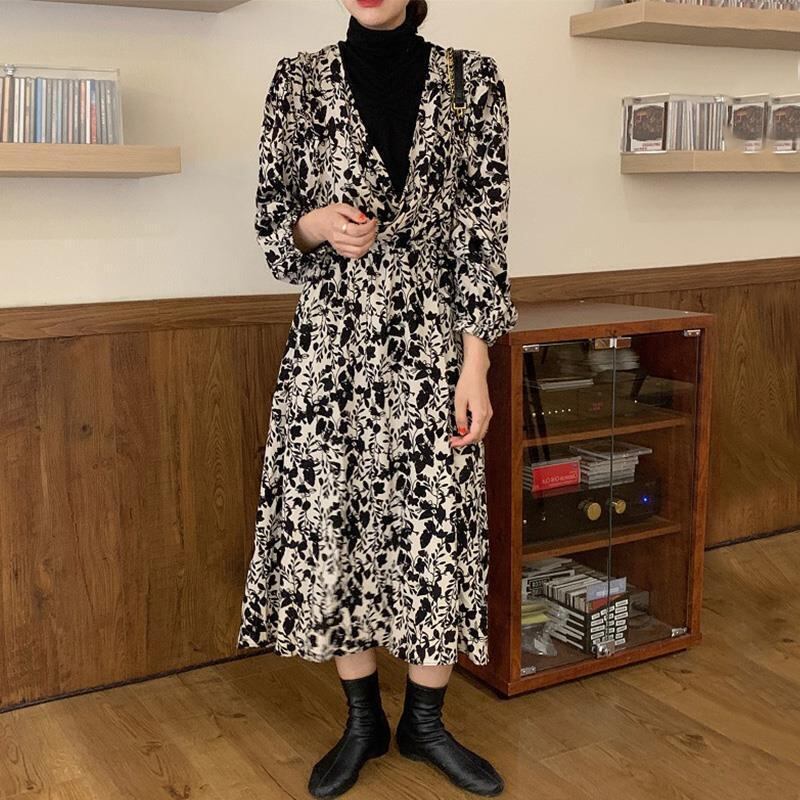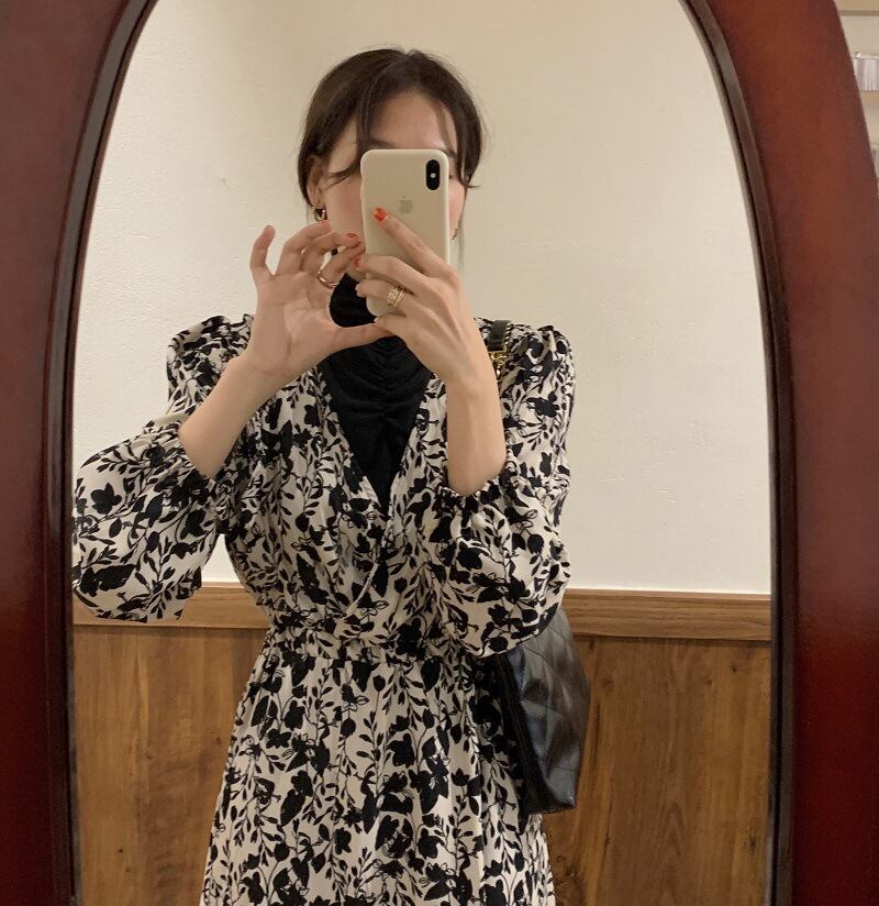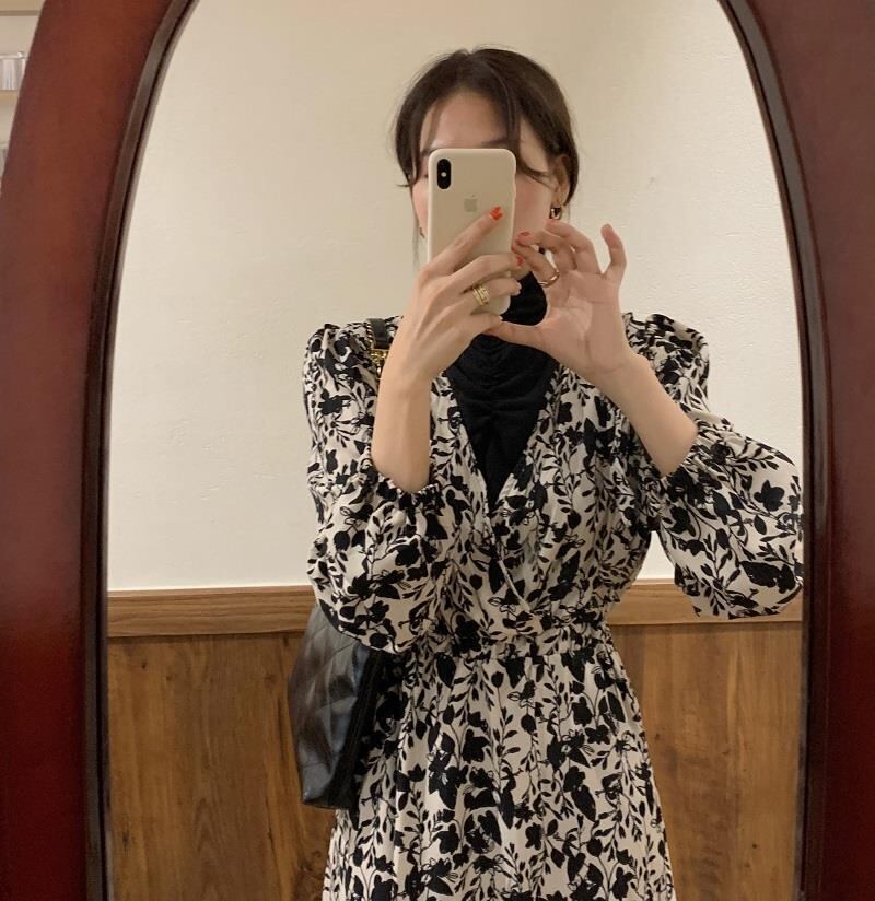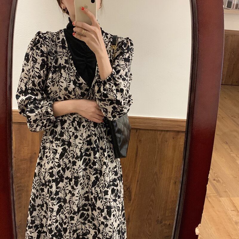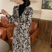 スタンダードカラーフローラルドレス レディース レトロ 花柄 ステッチ 普寧68592436338