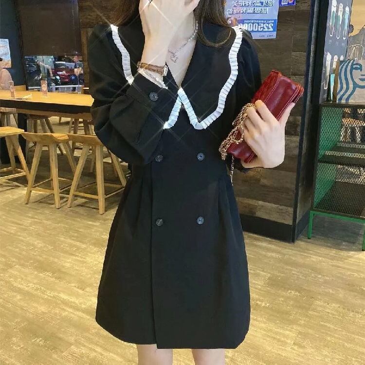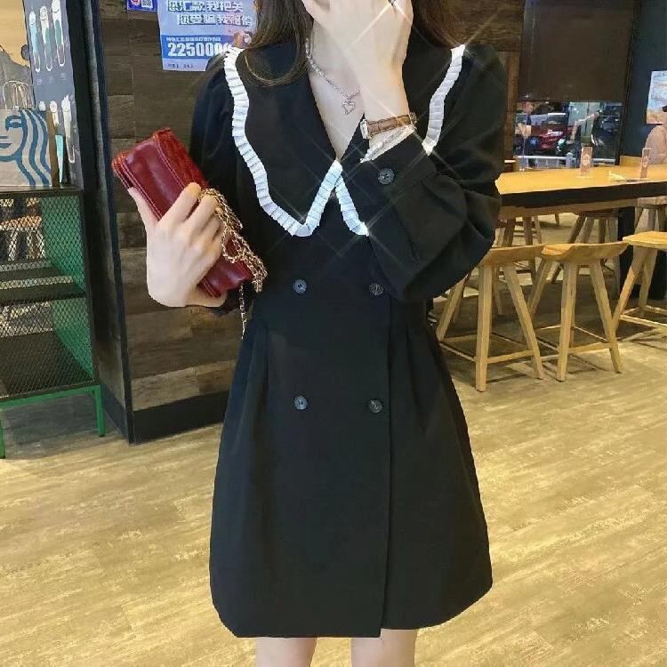 オータムスタンダードカラーウェストドレス レディース レトロ 秋物 ステッチ 普寧92828409707
