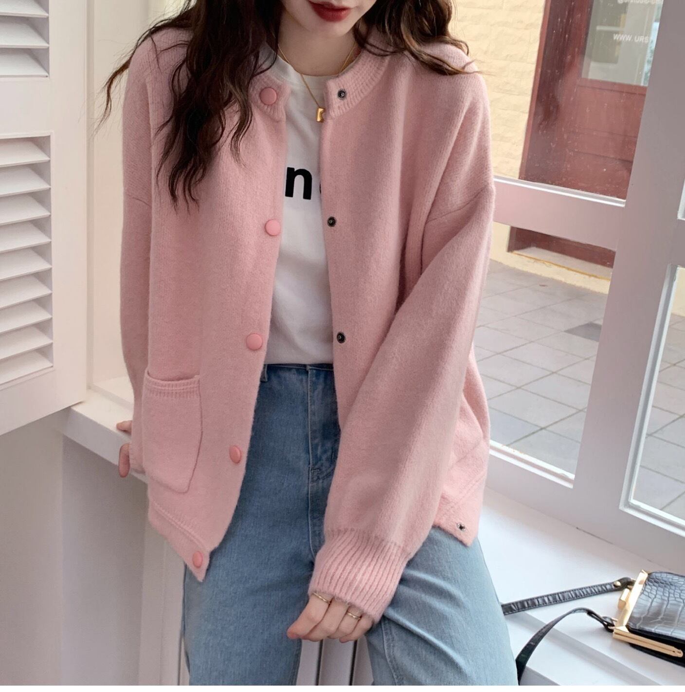 セーター オータムウィンタールーズスプリングニットカーディガンジャケット ピンク 春物 秋物 冬物 普寧38397672974