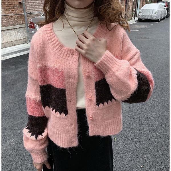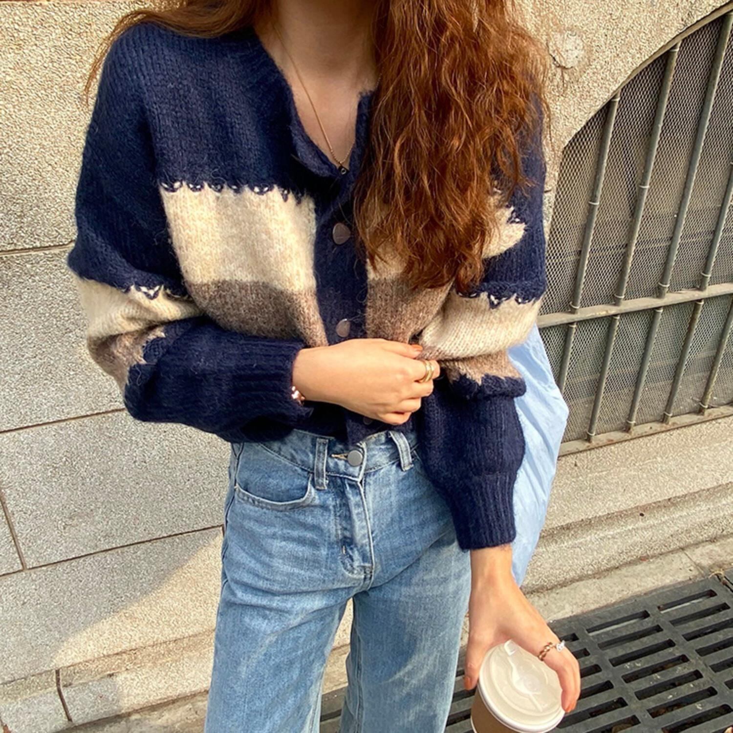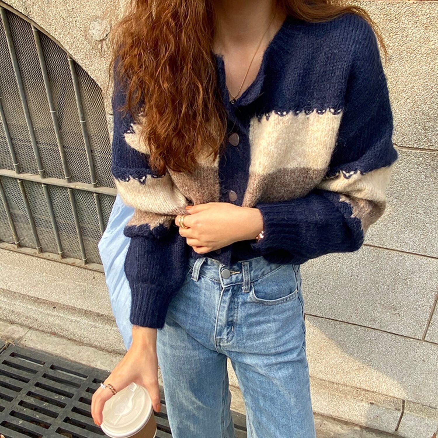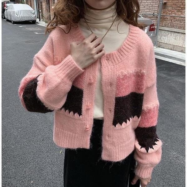 ニットカーディガンオータムスタイルスタンダードルーズショートセーター コート レトロ 秋物 普寧12925178800