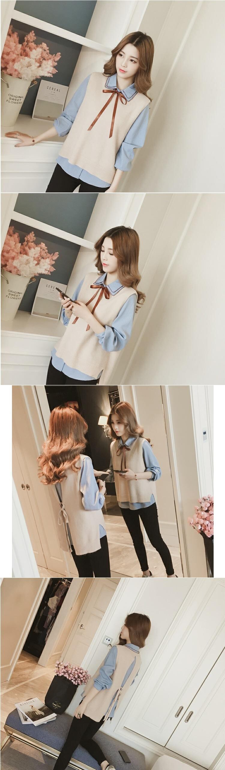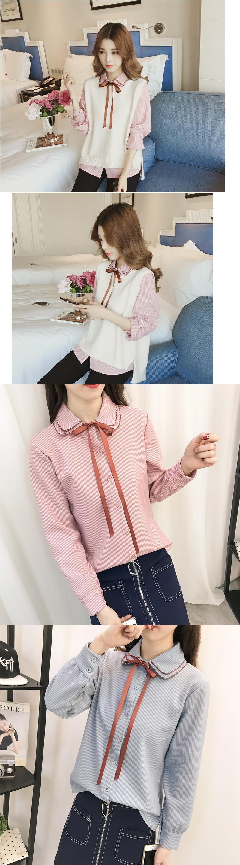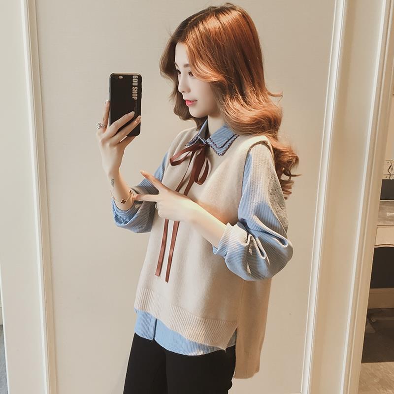 スプリングスタイルストライプシャツ ニットセーター 春物 普寧36844832448