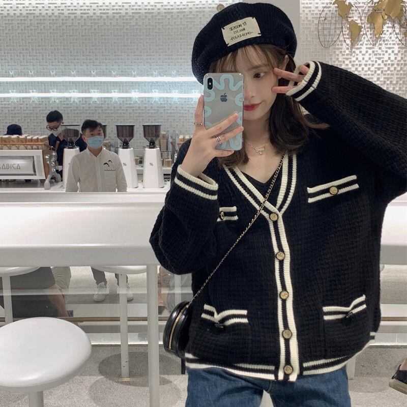 ニットカーディガンオータムジャケット Vネックセーター 秋物 普寧34209215561