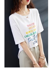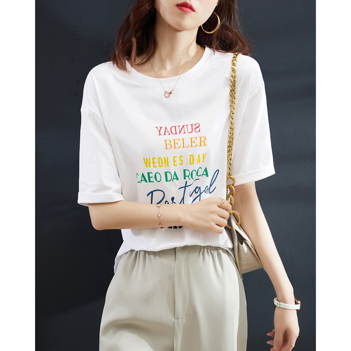 サマースタイルジャケット レディースルーズプリントTシャツ コットン 夏物 XWI57237616975
