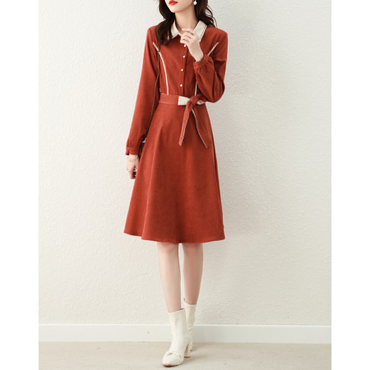 オータムウィンターハイウェストウェストレース薄手ボタンロングスカート ドレス レディース 秋物 冬物 レースアップ XWI8961210314