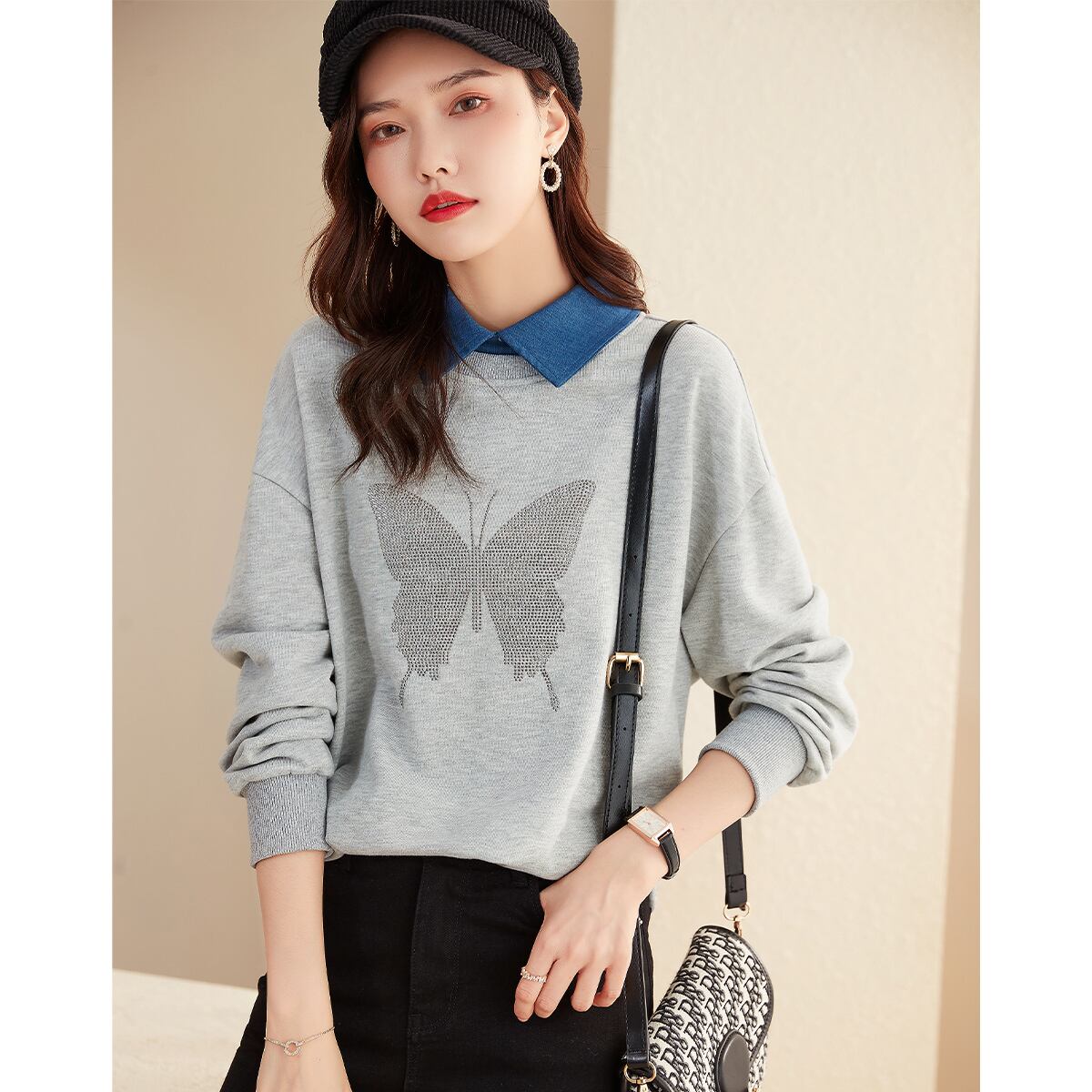 オータムButterflyデザイン ルーズ薄手カジュアルスタイルセーター 秋物 ステッチ XWI37419173870