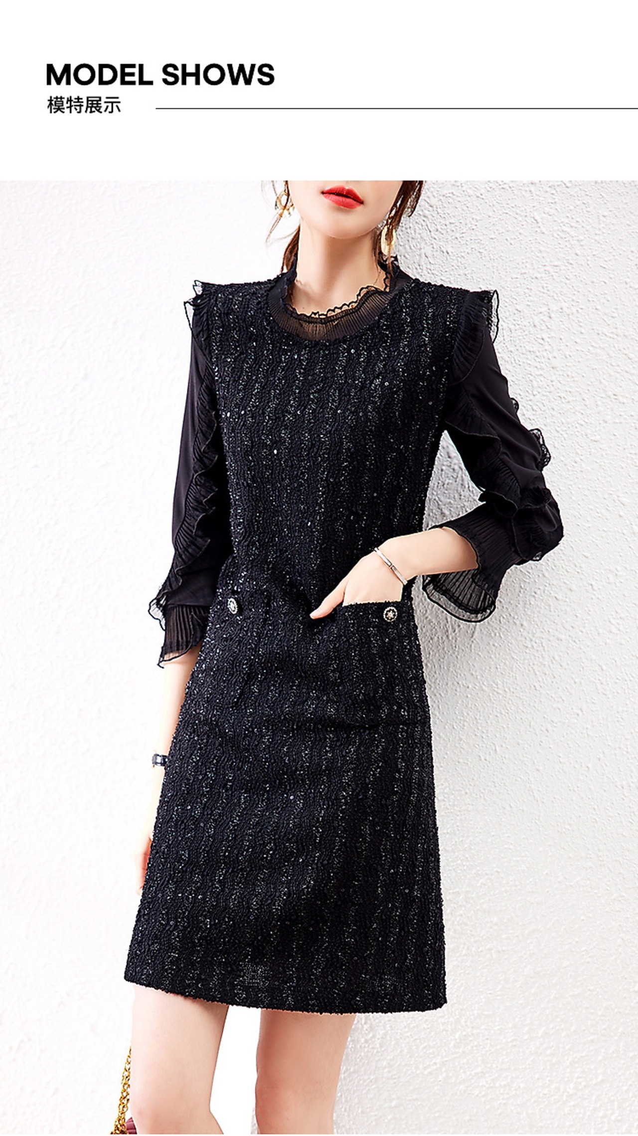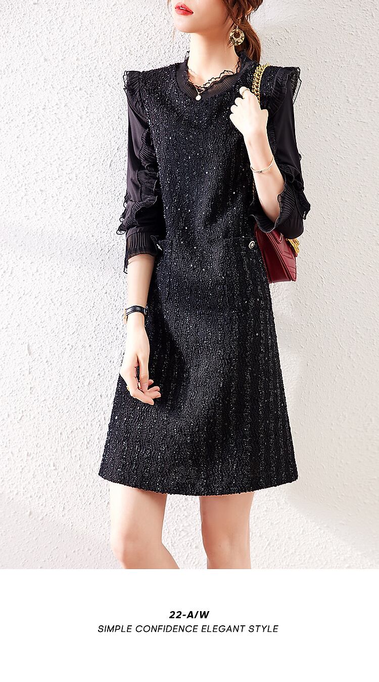 オータムドレス スタイルブラック薄手アドバンスロング 長袖 秋物 ステッチ XWI47805805508