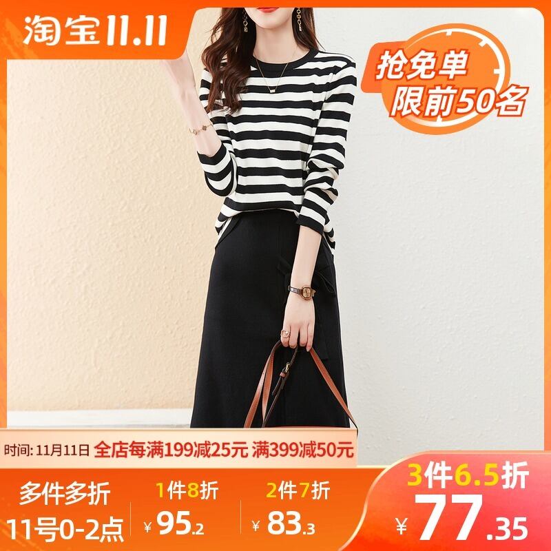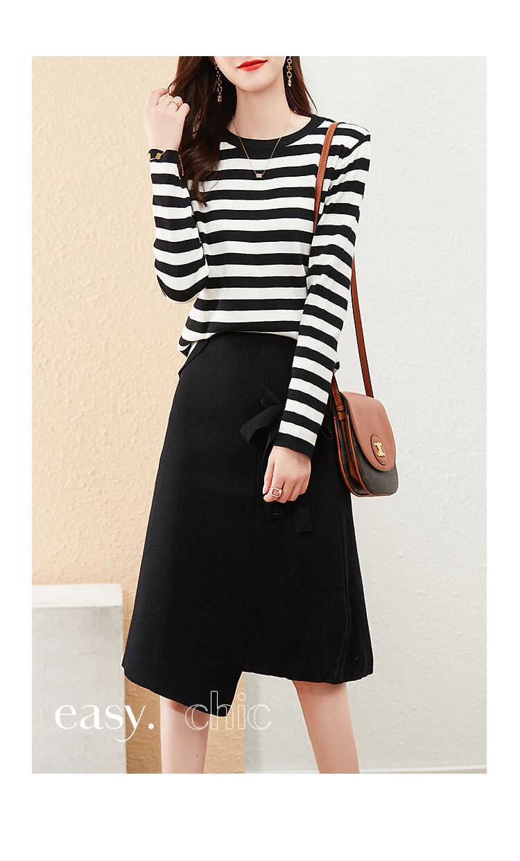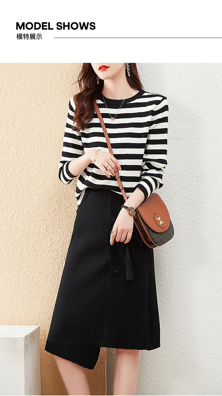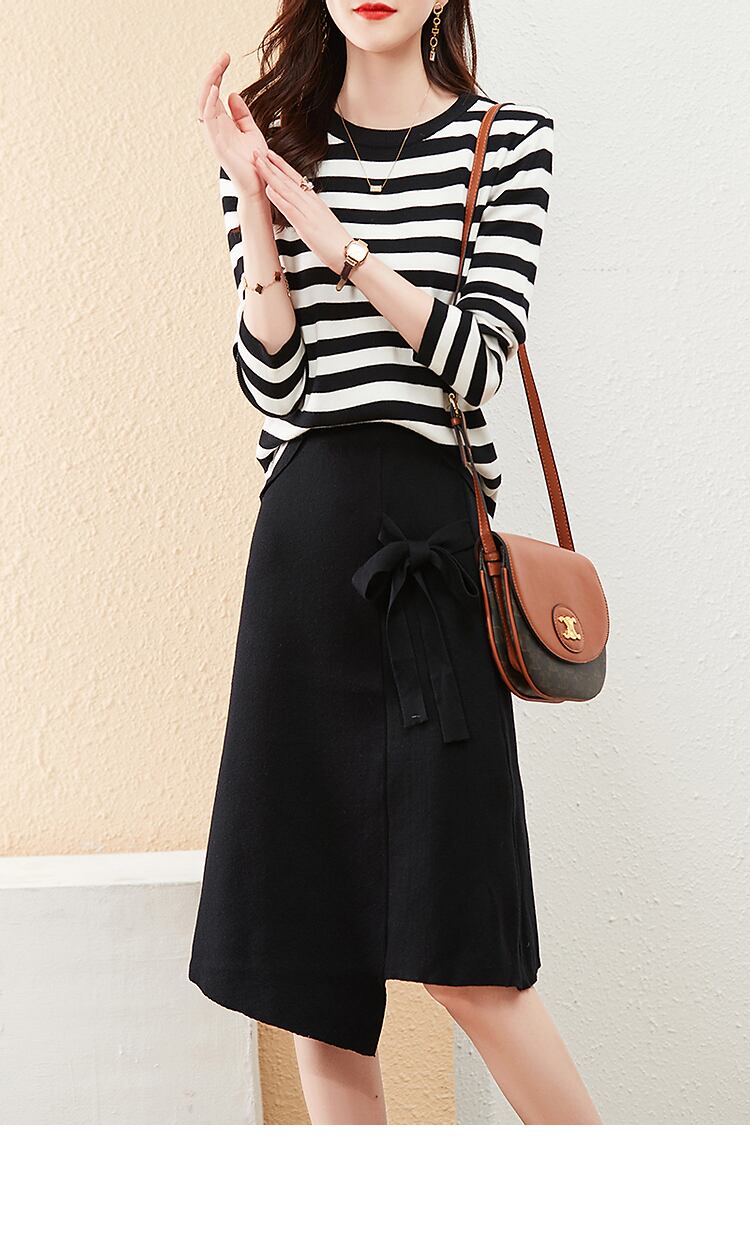オータムカジュアルストライプスリムセーター スカート 秋物 XWI26963721020
