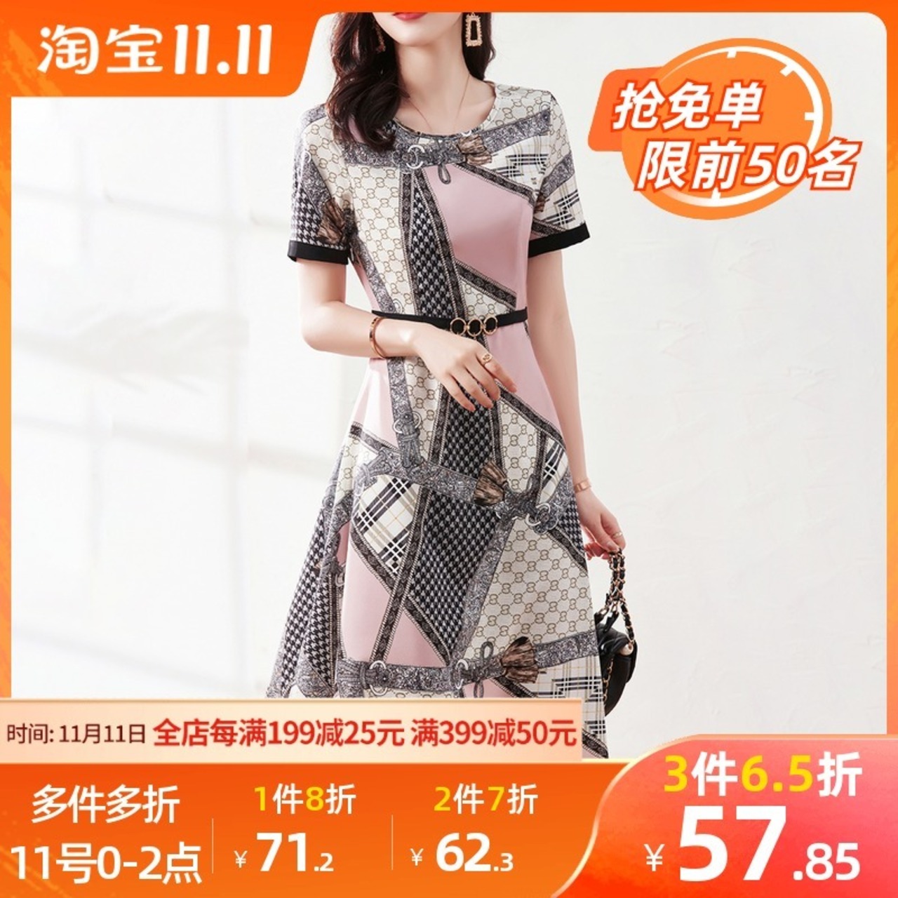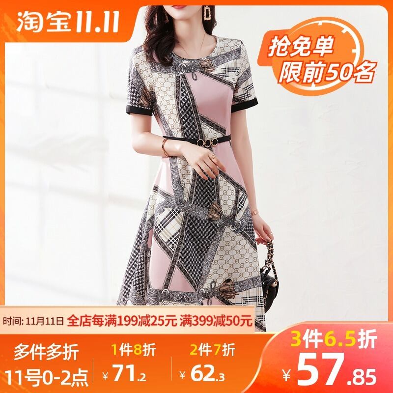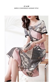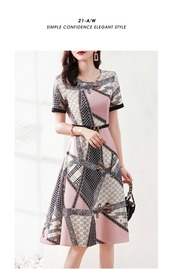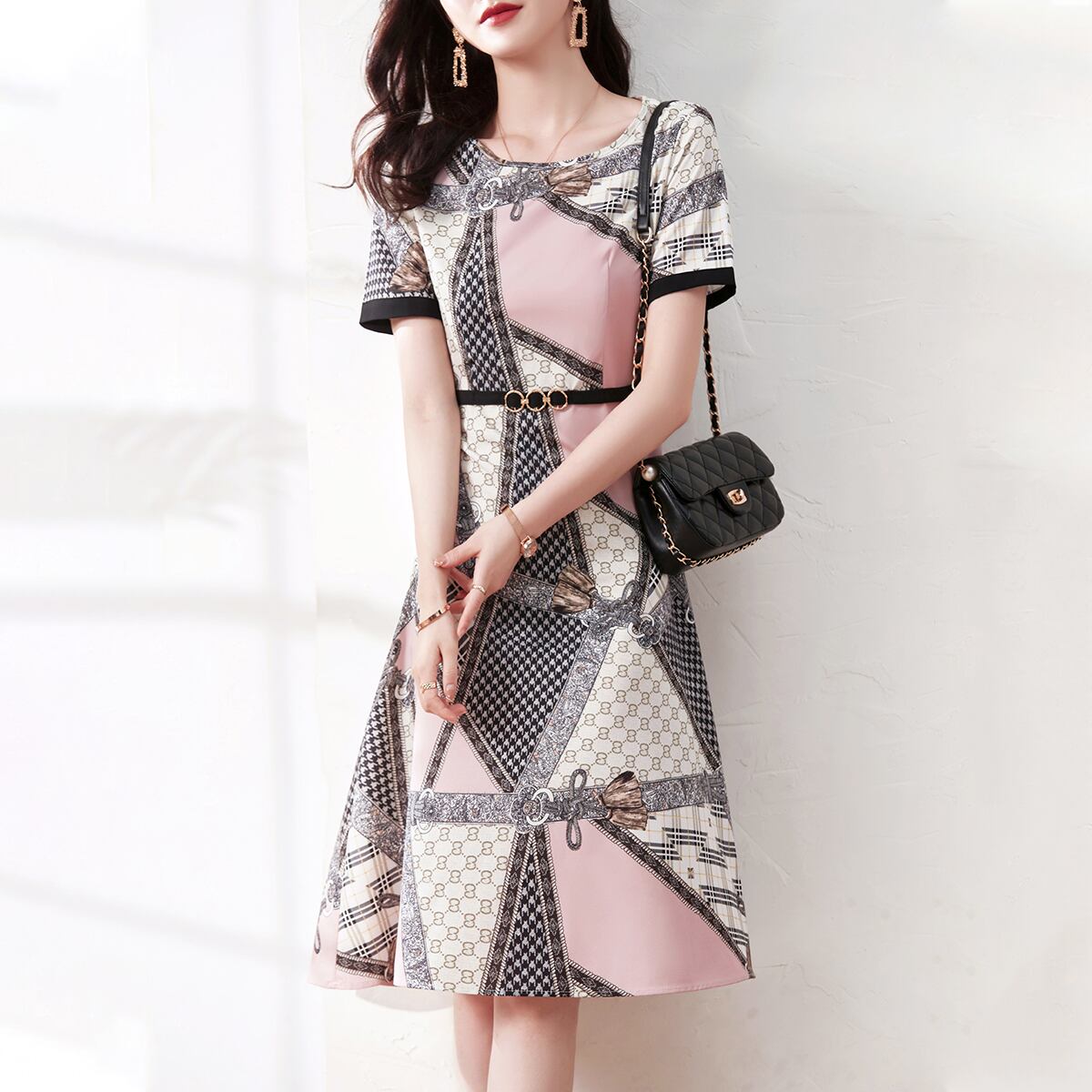 サマーウェストロングスカート Aラインラウンドネックドレス レディース 夏物 Oネック XWI34376320077
