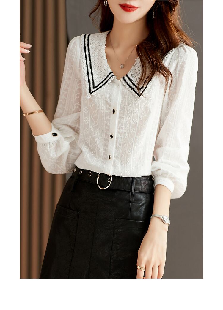 オータムホワイト刺繍Flowerデザイン ルーズレースシャツ レディース 秋物 ピュア フラワーデザイン XWI14469919230